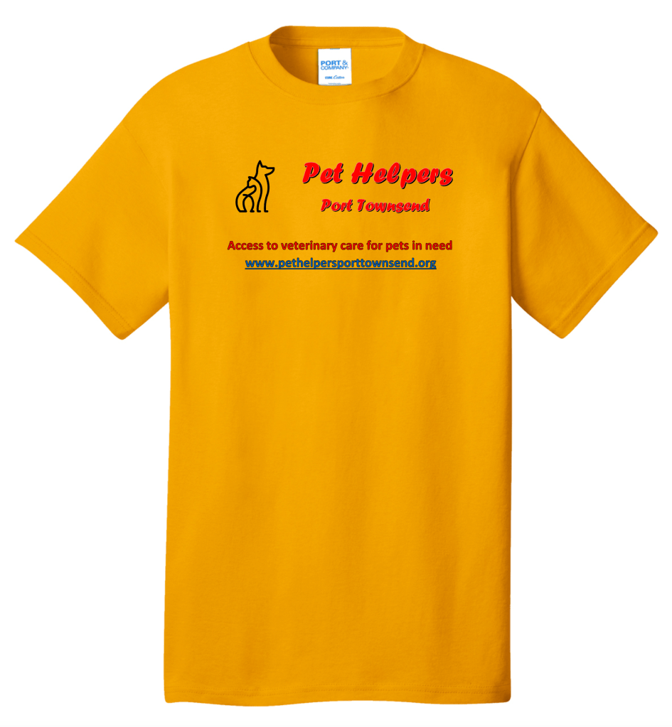 If you would like to promote Pet Helpers with a great t-shirt, just send a check for $25 to Pet Helpers, PO Box 1748, Port Townsend WA 98368, and specify size. If you live outside the Port Townsend/Hadlock area, please include $8 for postage.